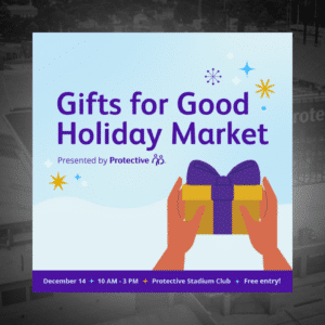 Celebrate the season and give back to local nonprofits at the 2nd annual Gifts for Good Holiday Market, presented by Protective in the Protective Stadium Club! Shop handmade pottery, jewelry, baked goods, home décor, and more — all while enjoying…