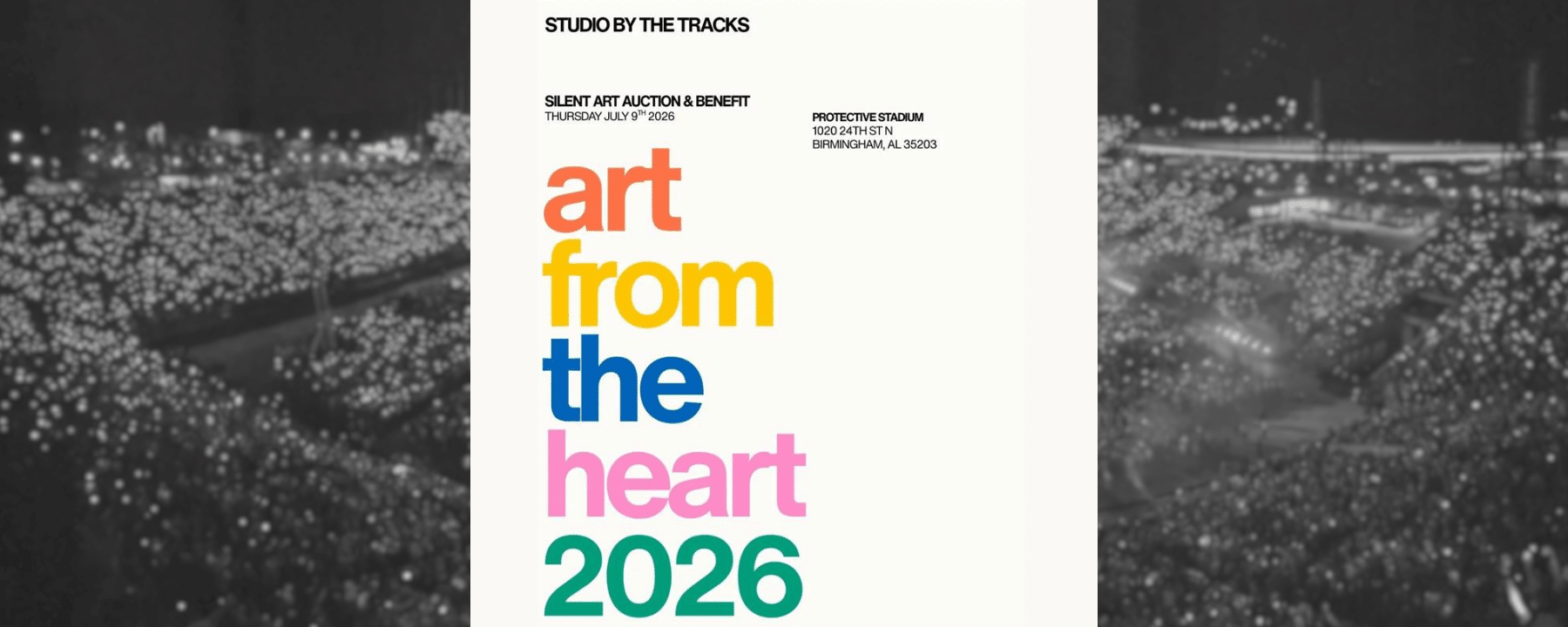 Art from the Heart is Studio by the Tracks’ biggest fundraiser of the year. Join us on Thursday, July 9 at Protective Stadium for art, community, and fun!