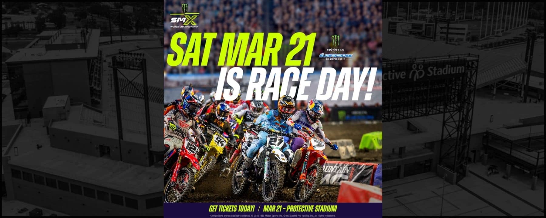 Back for its third thrilling year in Birmingham, AMA Supercross roars into town as part of its 17-city national tour! The Monster Energy SMX World Championship showcases the world’s elite off-road motorcycle racers as they clash in high-flying stadium battles packed with speed, skill, and intensity. Feel the adrenaline of the Monster Energy AMA Supercross season as stars like Jett Lawrence, Cooper Webb, and Haiden Deegan go full throttle toward the coveted championship title. With nonstop action, electric crowds, and an atmosphere you have to experience to believe, there’s nothing like seeing it LIVE!